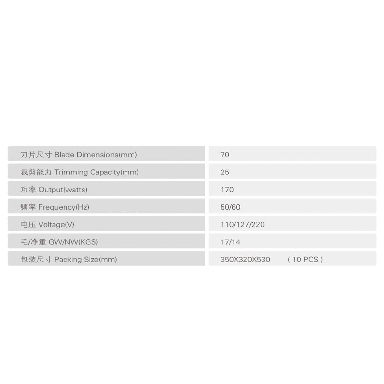 Blade Dimensions(mm)刀片尺寸 | 70 |