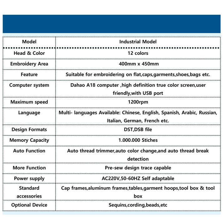 - Automatic thread trimming, automatic color change & auto thread break detection